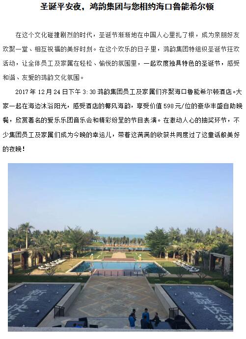 圣诞平安夜,鸿韵集团与您相约海口鲁能希尔顿